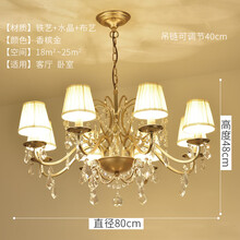 奥本佳美式吊灯水晶灯具客厅灯卧室餐厅简约现代家用个性欧法式轻奢吊灯 1708-8布罩款-三色LED灯泡