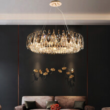 玺登 轻奢水晶客厅吊灯后现代简约大气餐厅灯饰新款奢华饭厅主卧室灯具 金色圆款【50CM】白光-赠送光源