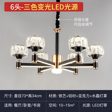 派钦 轻奢客厅吊灯现代简约水晶北欧大气餐厅灯具新款2021年主灯卧室灯 6头水晶吊灯-三色变光LED