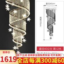 ‼️复式楼loft长吊灯别墅楼梯灯水晶LED现代简约梯吊灯旋转楼梯间公寓吊灯佛山灯具照明 直径40cm/总高120cm/配送LED光源