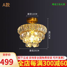 ‼️现代轻奢过道灯走廊灯小吊灯美式客厅后水晶玄关灯入户法式佛山灯具照明 吸顶A款 直径25CM高度22CM LED三色光源