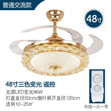 定制水晶风扇灯餐厅隐形扇客厅Led吊扇灯具卧室带电风扇轻奢吊灯 48寸+三色变光+遥控
