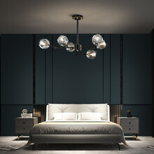 玺登 轻奢水晶客厅吊灯北欧风格灯具后现代简约餐厅吧台灯创意个性大气分子魔豆艺术网红灯饰 全铜 黑擦金6头【65CM】三色 8CM灯罩