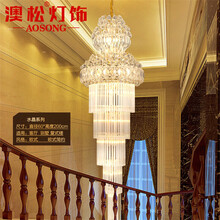 澳松 楼梯吊灯 旋转楼梯水晶吊灯轻奢金色复式楼客厅中空大吊灯楼中楼水晶长吊灯酒店别墅大堂会所工程灯具 直径800高度2500MM
