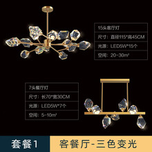 幻鲨 轻奢客厅吊灯现代简约大气全铜冰菱角水晶卧室餐厅灯具2021年新款 全铜 客餐厅 套餐1 三色 -客厅80%客户