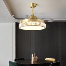 张家灯社 全铜水晶风扇吊灯 轻奢餐厅卧室隐形吊扇现代小客厅房间餐厅灯具 铜风扇灯/水晶