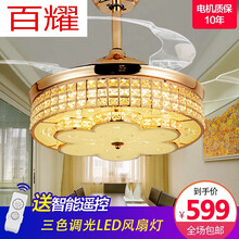 欧式水晶吊扇灯风扇灯饰隐形餐厅吊灯客厅灯具餐厅灯现代简约卧室灯饰 42寸 36W 三色变光