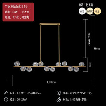 2021年新款全铜轻奢客厅吊灯现代简约大气灯具12头水晶魔豆分子灯 全铜水晶餐厅灯12头 送LED3色光源