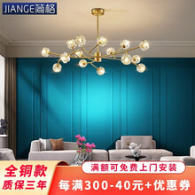 简格 全铜客厅吊灯北欧餐厅灯具后现代简约轻奢灯饰卧室魔豆水晶分子灯 全铜水晶款 18头 90W LED白光
