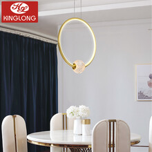 琪朗 轻奢北欧餐厅吊灯现代简约LED水晶卧室灯个性戒指吧台灯具 1E-金色