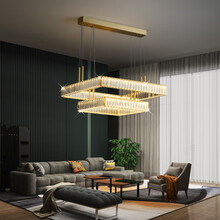 玺登2021新款北欧风格正方形客厅灯轻奢大气餐厅水晶灯具创意简约后现代方形大厅吊灯 金色 双层正方形【80+60F】三色
