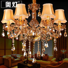 奥灯欧式琥珀色水晶吊灯客厅卧室金色布艺灯罩6头吊灯具1061 10头