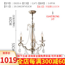 ‼️美式吊灯美式复古客厅餐厅灯卧室创意咖啡厅枝形银色蜡烛法式水晶灯佛山灯具照明 D46*H53cm 3头带7W暖光