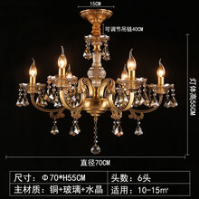 奥灯欧式全铜吊灯蜡烛水晶吊灯客厅卧室餐厅复古铜色全铜灯具1733 6头铜灯