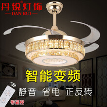 丹锐 隐形风扇灯吊扇灯遥控智能变频欧式水晶餐厅吊扇灯金色卧室风扇吊灯现代简约led三色变光家用电扇灯 42寸智能变频遥控 适合10-25平方