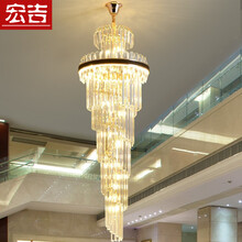 宏吉 复式楼梯吊灯中空客厅水晶大吊灯LED后现代轻奢旋转楼梯长吊灯具 黑色 直径45高度150CM