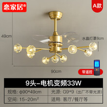 歺厅灯带电风扇牌灯餐厅隐形吊扇灯的客厅大吊灯全铜魔豆灯 全铜A款/水晶吊灯9头变频(送光源)