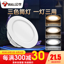 公牛筒灯led家用孔灯过道走廊牛眼灯具玄关灯客厅灯桶灯超薄洞灯嵌入式吊顶天花一体三色筒灯晶熠3寸4W 三色筒灯/单只装【全场直降】每满300减60,限明皓/明润系列; 【清单报价】咨询客服一站购齐,时间:8月5日-8月8日 【满额送豪礼】点击进入活动专区!