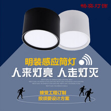 LED人体感应简灯明装雷达感应筒灯免开孔吸顶式酒店楼梯过道铜灯 晚上/全天10X7声控感应7W