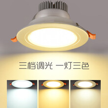 晗亮筒灯led嵌入式家用三色变光射灯背景墙天花板吊顶孔灯牛眼灯桶灯 拉丝银(3W白光开孔70MM-85MM)