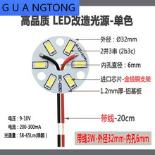 led灯珠圆形高亮灯片5730贴片吸顶灯水晶灯筒灯射灯3w5w灯芯灯板 3W带线32mm外径-内孔6mm 白光