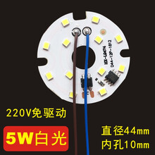 220V免驱动led光源灯片贴片吸顶灯筒灯射灯餐吊灯圆形改造灯板 5W白光44mm 其它 其它