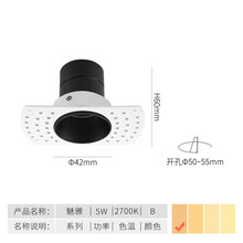 无边框射灯 不眩SCON无边框LED小射灯防眩光灯嵌入式5W客厅卧室过道天花灯筒灯 5W/2700K