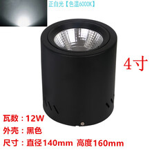 led明装筒灯4寸cob5寸吸顶圆形桶灯6寸30W8寸吊装灯酒店商场射灯 12W黑壳【正白光】