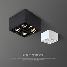 时间公园 LED明装筒灯四头射灯客厅家用方形COB盒子斗胆灯格栅灯无主灯照明 直角黑色-28W-3000K
