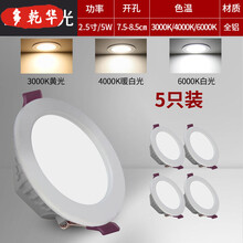 博尔美led筒灯嵌入式家用孔灯洞灯7.5开孔三色变光天花灯防眩目5w 至真筒灯5W 2.5寸 喷白 变光 5只装