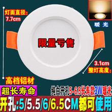 筒子灯 小筒灯led简灯3W5嵌入式2寸50mm55开孔灯5cm5.5公分6射灯60 纯白开孔5-6.5cm长寿款3W暖光