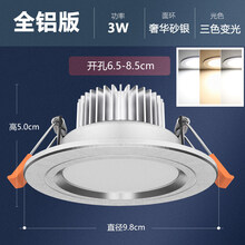 家用筒灯嵌入式led天花灯开孔7.5cm客厅吊顶5w射灯猫眼洞灯牛眼灯 全铝3W三色【磨砂银】开孔6.5-8.5cm
