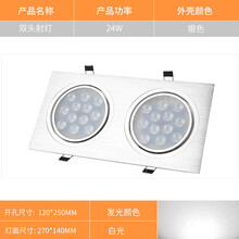 双筒灯 双头射灯LED格栅双筒长方形筒灯过道天花斗胆灯嵌入式豆胆灯10X20 【银色12*25】24W白