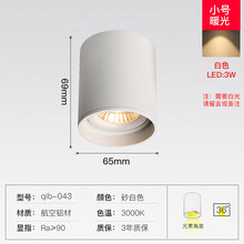 射灯 家用防炫圆形明装射灯led筒灯可调角度吸顶式防眩射灯家用阳台客厅无主灯 白色小号 3W 暖光(3000K)