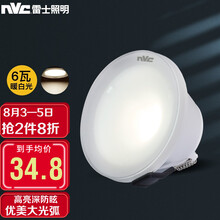 京东超市 雷士照明(NVC) WHTD06-02筒灯led射灯天花灯客厅卧室孔灯高显色漆白6瓦暖白光【雷士品牌秒杀日】【0-24点限时抢2件8折!美家系列!磨砂透光款射灯!无主灯主流照明|高亮深防眩】【限时秒杀,点击抢购】