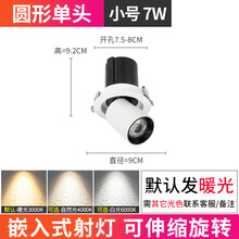 可拉伸嵌入式LED射灯可调角度家用客厅轨道灯店铺商用象鼻伸缩灯 7W圆形单头/开孔75-80mm