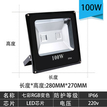 超亮led七彩投光灯户外防水防爆照树灯室外照明景观绿化彩色射灯 七彩(带遥控)--100w【1发2】