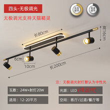 轨道灯射灯 led天花灯家用无主灯照明客厅衣帽间吸顶明装小射灯 D款黑金200cm无极调光(射灯默认暖光)