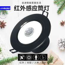 红外人体感应筒灯黑色洞灯智能天花灯酒店走廊玄关嵌入式LED桶灯 雅黑2.5寸3W(白光)带光控/开孔7.5-8.5