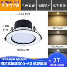 三色变光led筒灯开孔6.5 7 7.5 8 9 10 12公分4寸12W嵌入式天花灯佛山灯具照明 黑边2.5寸7W三色Φ6.5-8cm