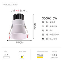 酷丰led筒灯嵌入式圆形防眩光天花灯家用客厅过道灯洞灯孔灯射灯 5W白色3000K-开孔5CM