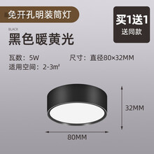 明装筒灯走廊过道灯射灯超薄圆形免开孔入户玄关天花led小吸顶灯 (普通款)黑壳5W-暖黄光-直径8CM