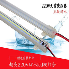 超亮LED硬灯条220V灯带防水 长条灯点菜保鲜展示柜灯冰箱鱼缸灯管 220V防水灯透明罩120厘米 白光PC防水硬灯条,可多条串联,可带开关线,双面胶卡扣固定
