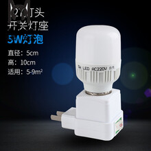 插座灯超亮 led插座灯带开关超亮客厅卫生间厨房节能灯卧室床头灯插电小夜灯 铜灯座+高亮5瓦/白光