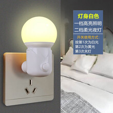 插座灯 可调光节能省电插电LED小夜灯带开关婴儿喂奶插座卧室起夜床头灯 可调光球泡(白色)