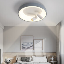 卧室灯北欧创意简约现代led吸顶灯带射灯极简圆形房间灯书房灯具 灰色-直径38cm-白光