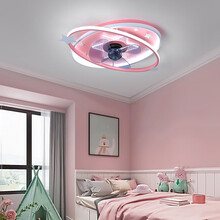 明奢儿童卧室灯吸顶灯带风扇北欧简约现代led灯具遥控三色变光创意艺术灯饰网红家用温馨房间书房灯儿童灯 粉色60CM款-无极调光-配遥控
