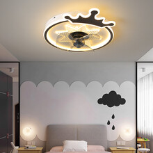 明奢儿童灯男孩女孩卧室灯带风扇创意个性皇冠装饰灯简约现代北欧灯具轻奢艺术儿童房间灯书房灯led吸顶灯 白+黑56CM款-无极调光-配遥控
