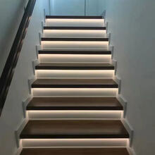 网红楼梯踏步感应灯带别墅复式追光流水跑马铝槽嵌入式台阶线条灯 13步智能感应逐步亮款全套(铝槽) 白光(6000K)