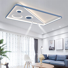 掌灯时分 客厅灯长方形现代简约家用大气蓝白色1.1米大厅灯带射灯可180度旋转北欧极简超薄餐厅灯饰 90*70CM-三色118W(射灯默认中性光)
